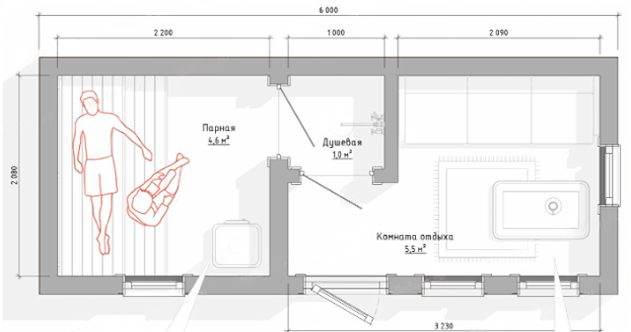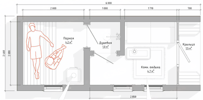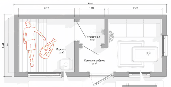 Укажите площадь бани